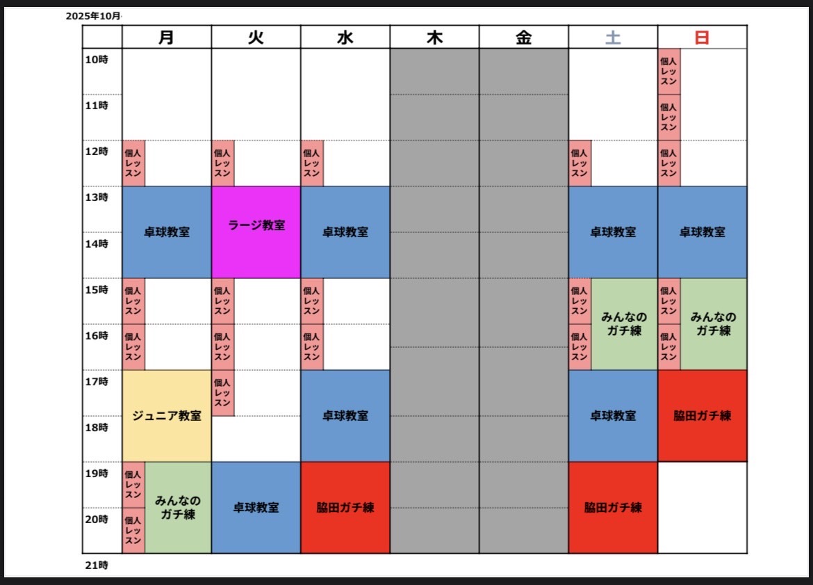 | 毎週 火・水・土・日 曜 | 17:00〜18:50 |